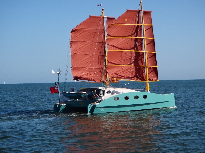 Pete Hill is a well known voyager, we probably all know at least something about him.   His ex wife Annie of course wrote a few books including Voyaging on a Small Income, but Pete himself does not seem concerned about sharing his adventures with the world.   Having sailed the world for 40 years more or less, he's built a few boats, including his first catamaran, and the Benford Dory Badger he and Annie sailed in, as well as his current catamaran Oryx.  He's been pretty much of a "junk rigger" since Badger.  The current boat Oryx has been through a number of iterations including soft wing sails, and now an aerojunk rig, and was originally built with Vortex plates, which were replaced with more conventional keels.   His experience being dismasted on his Freedom 33, where the carbon fiber mast just snapped at deck level is enough to make me question carbon as a mast material, though that is probably not fair, every mast has a failure mode.